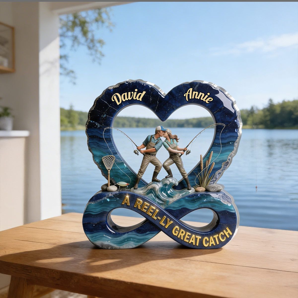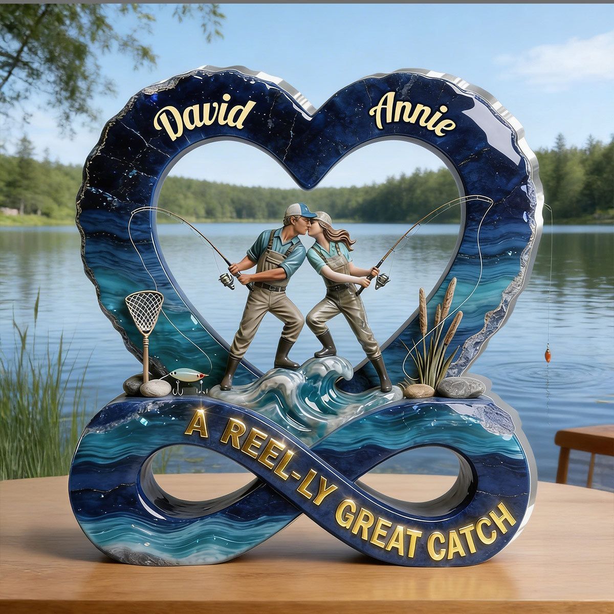 Targa acrilica personalizzata a Reel-ly Great Catch | Nome personalizzato Keepsake di coppia di pesca