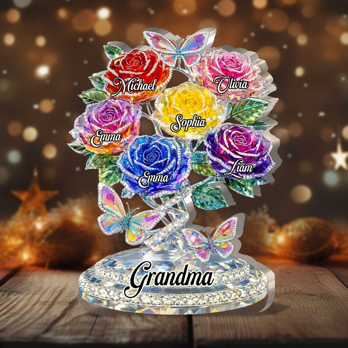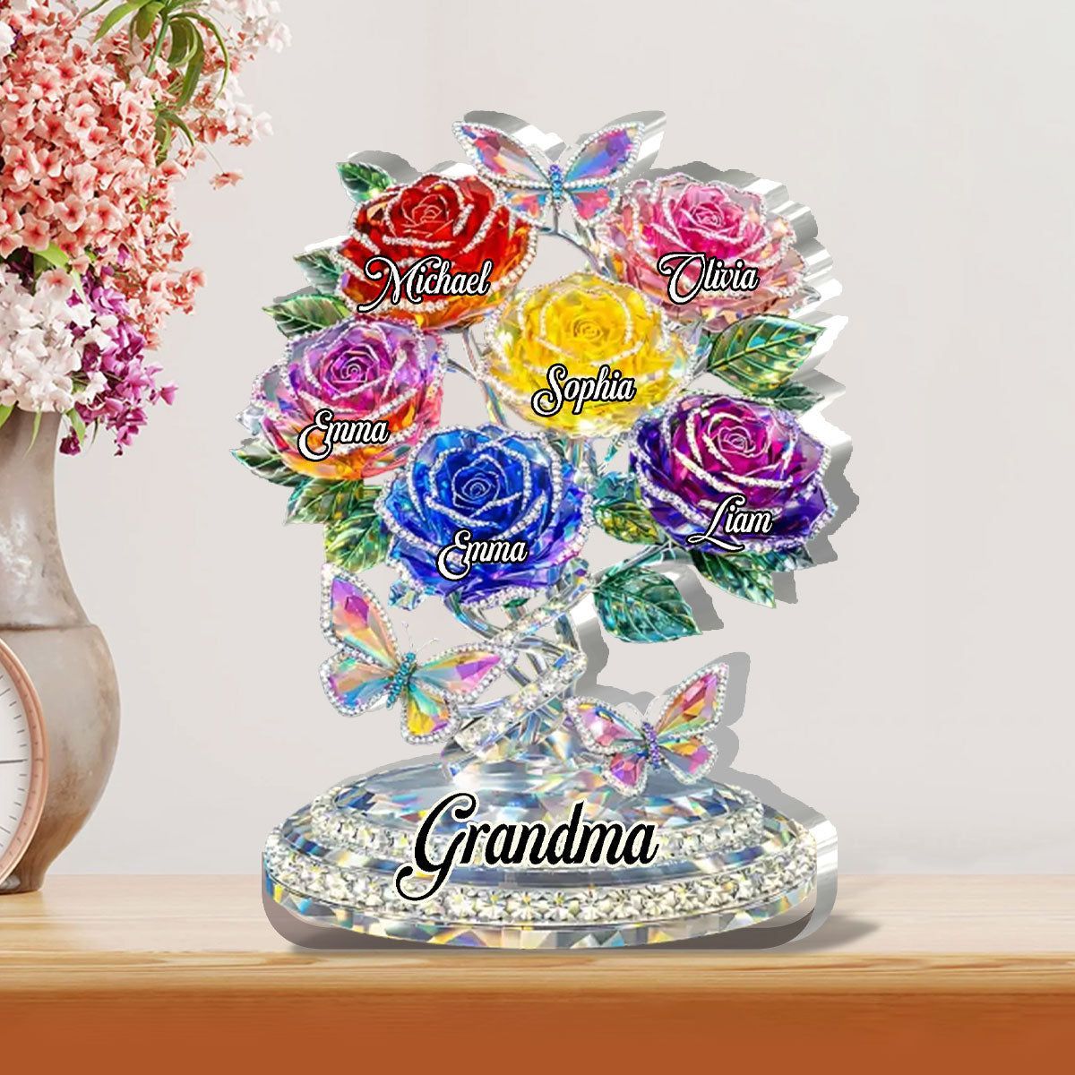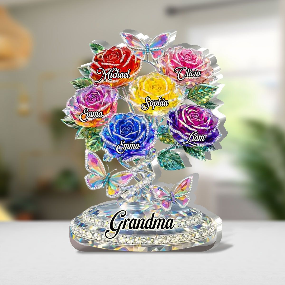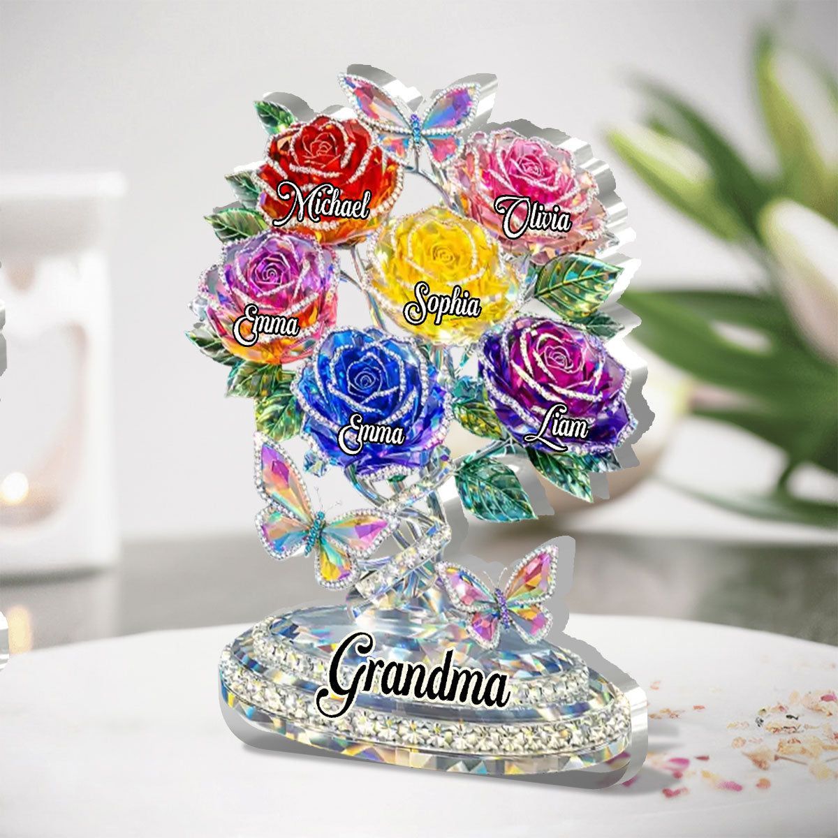 Placca acrilica personalizzata dell'albero genealogico di cristallo rosa | Nomi personalizzati della famiglia della nonna
