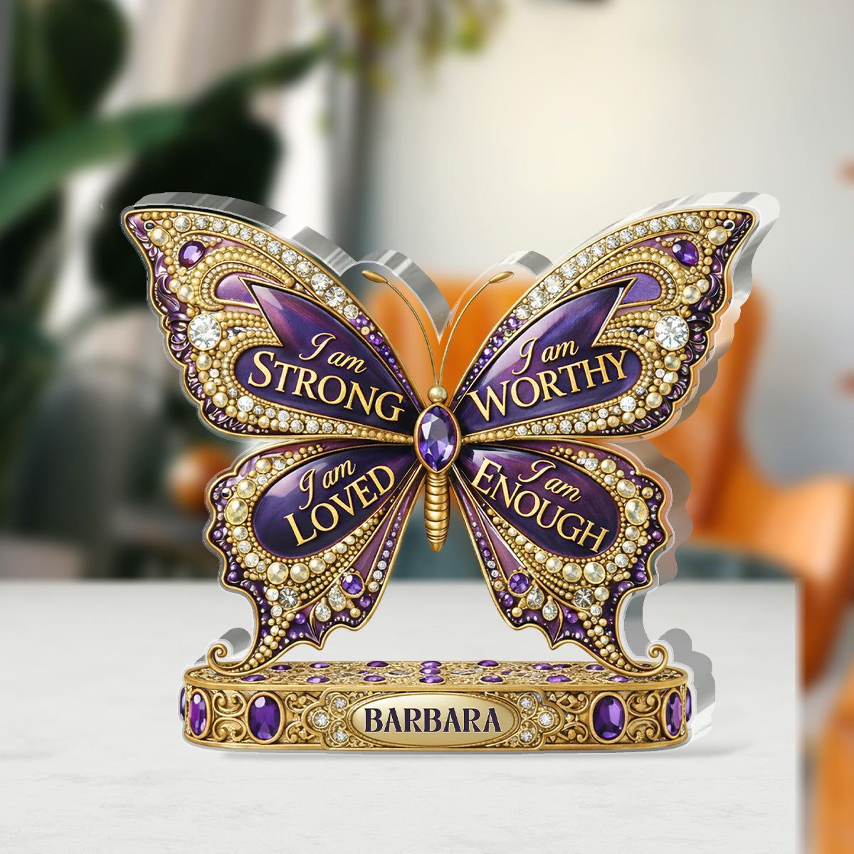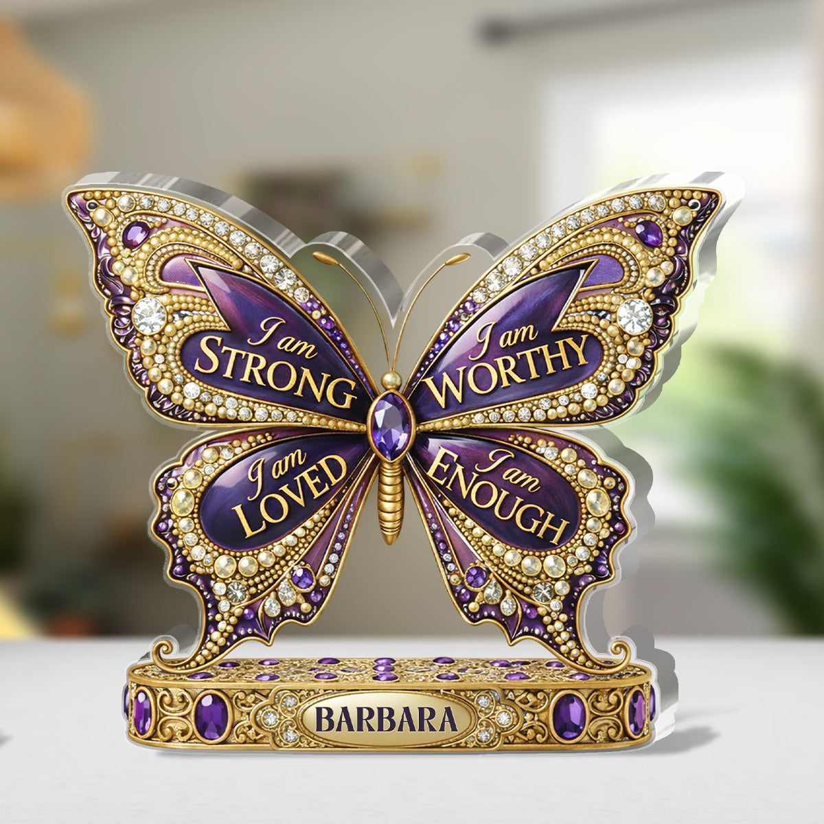 Placca acrilica personalizzata I Am Enough Butterfly | Custodi di affermazione del nome personalizzato