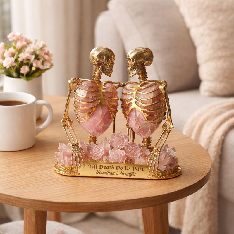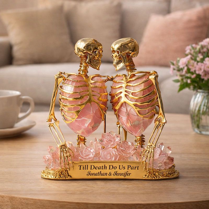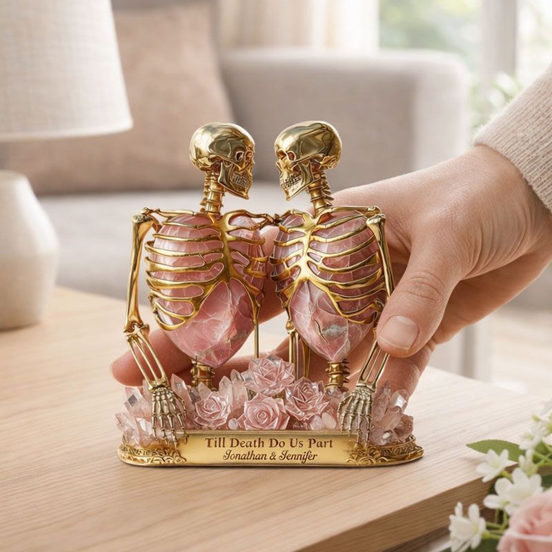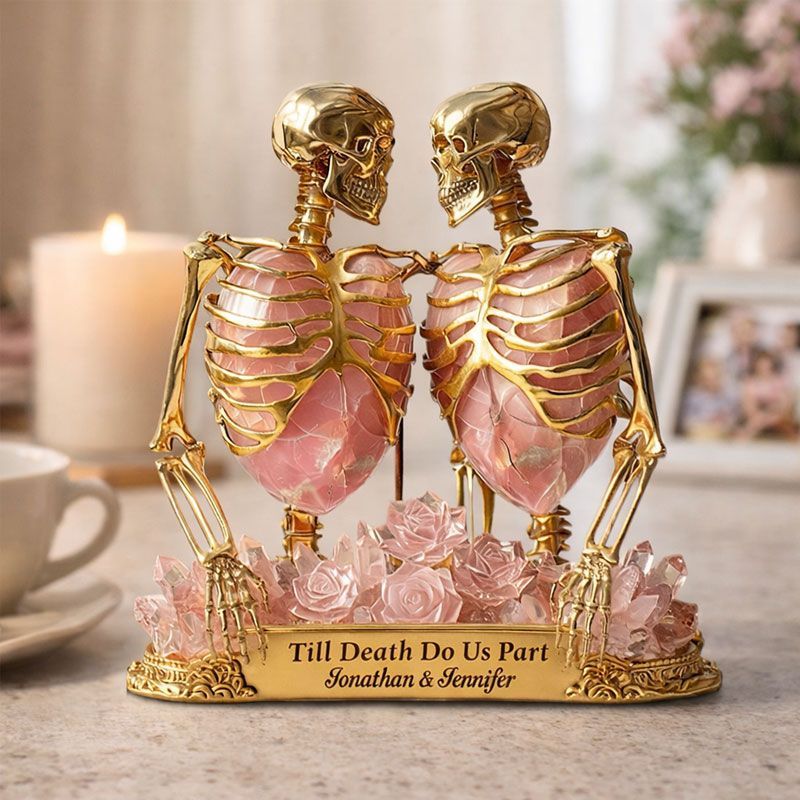 Personalizzato Till Death Do Us Part Placca acrilica | Nome personalizzato Skeleton Coppia Rose Quarzo Keepsake
