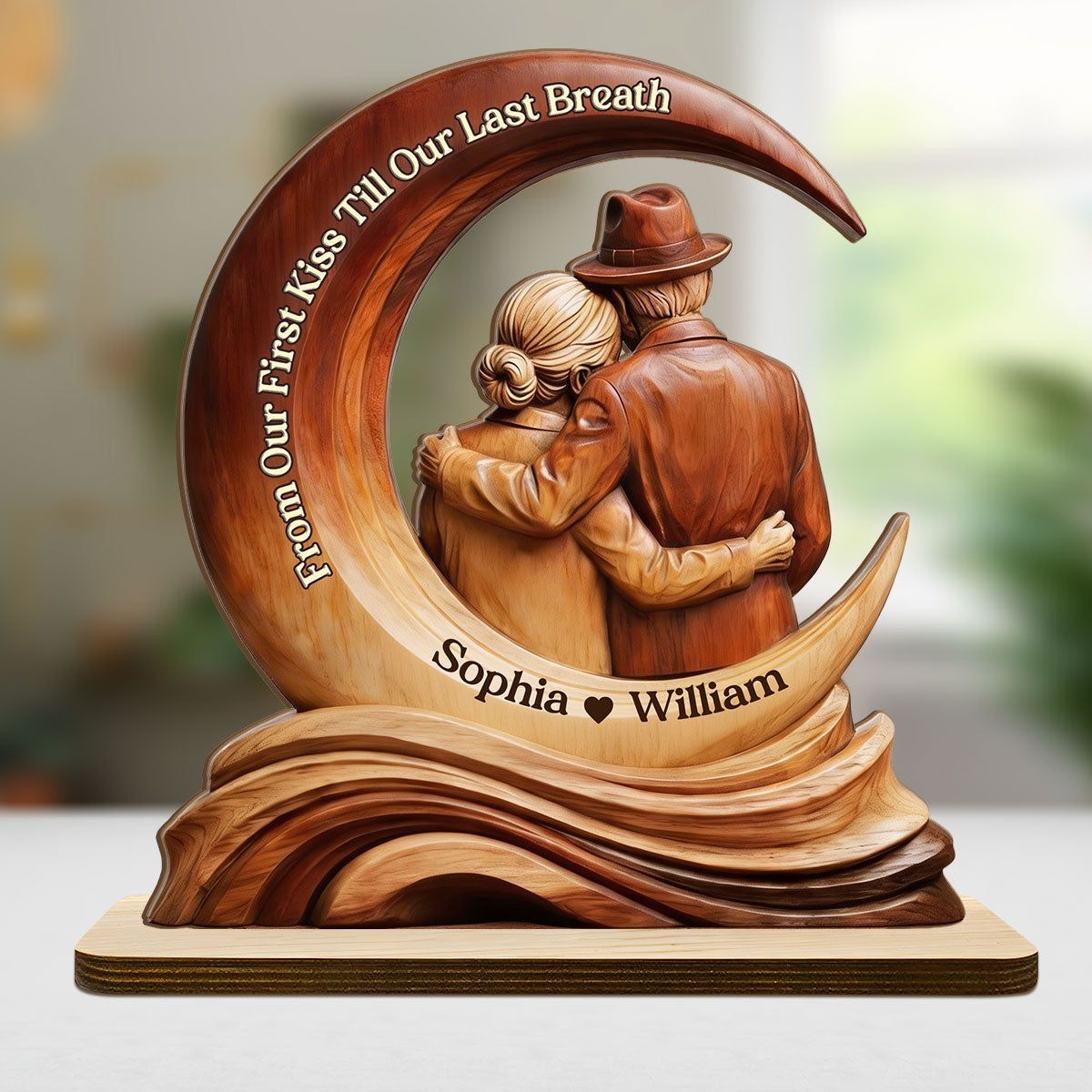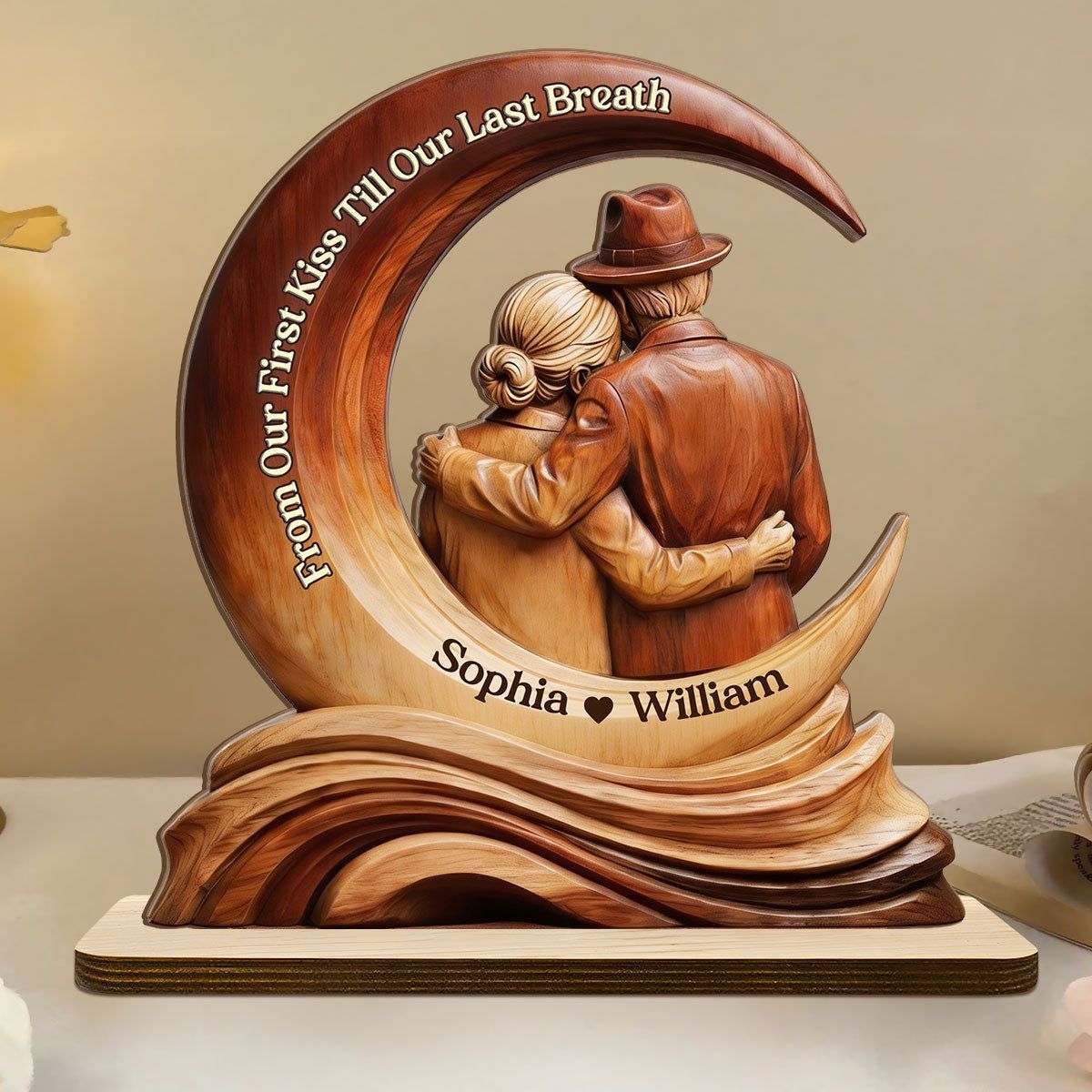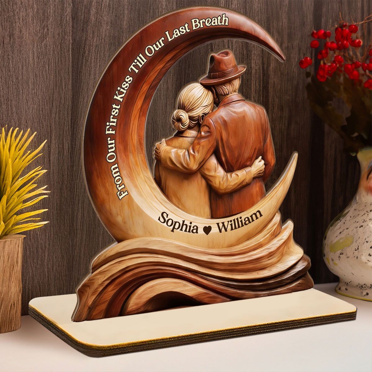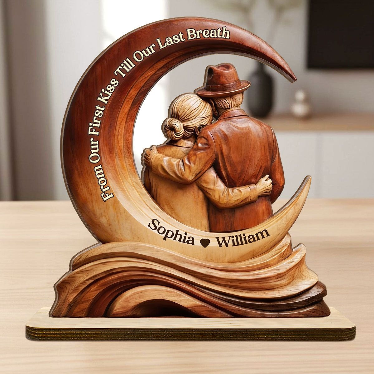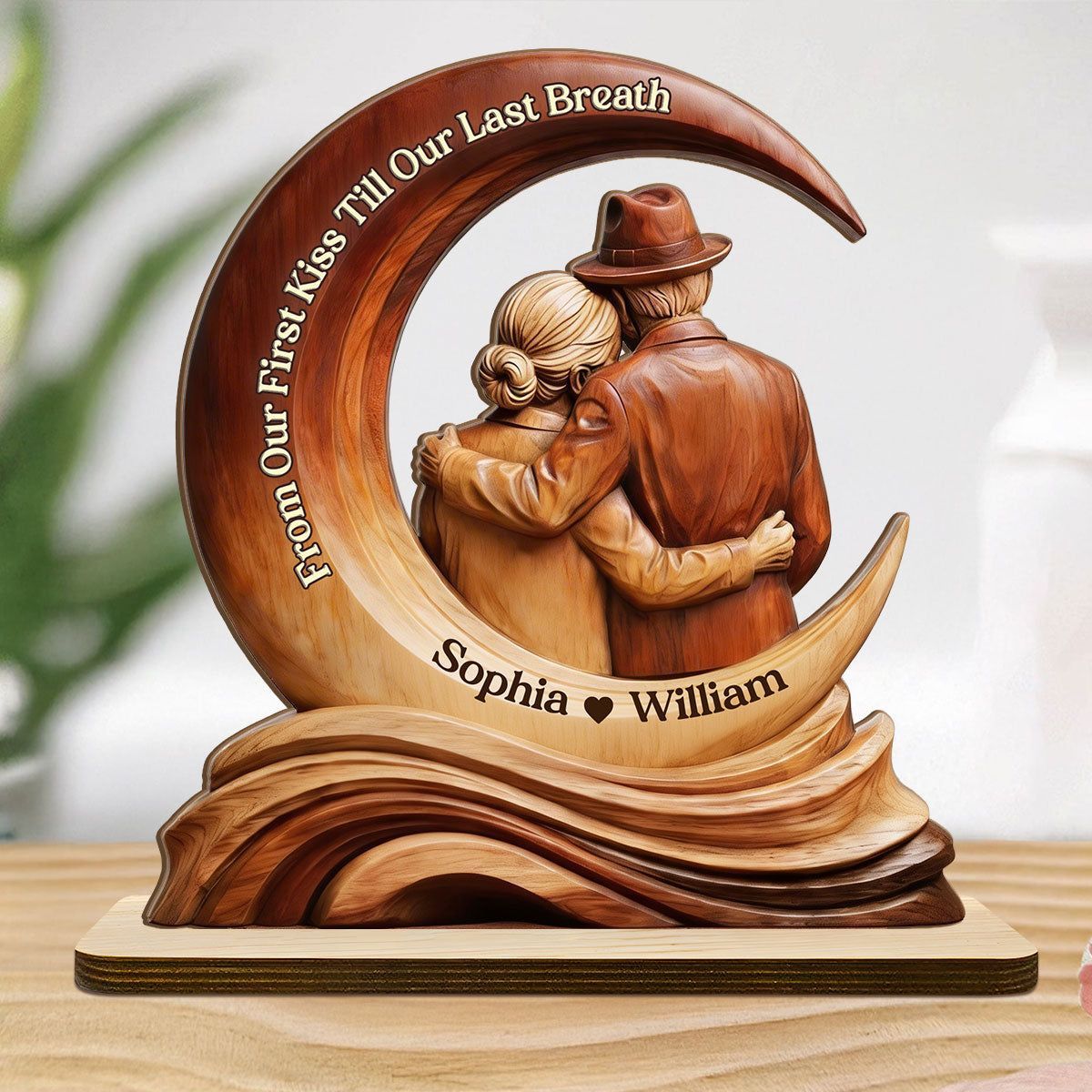 Personalizzato dal nostro primo bacio fino al nostro ultimo respiro targa di legno | Nome personalizzato coppia anziana Moon Keepsake