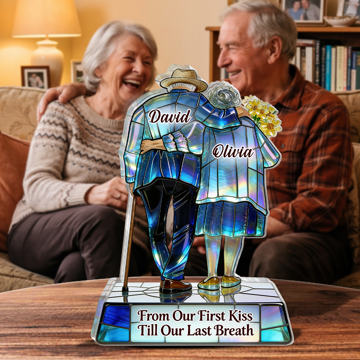 Per una coppia di anziani: Honor i loro anni di compagnia con il Design della coppia di anziani in vetro colorato-un regalo con più calore e significato rispetto a un regalo ordinario.
