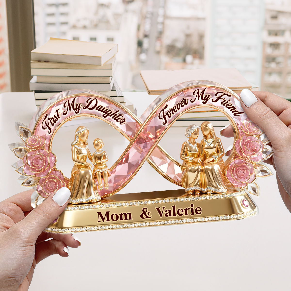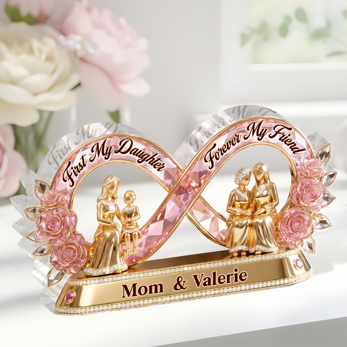 Personalizzato prima mia figlia, per sempre la mia amica Placca acrilica | Nome personalizzato mamma e figlia Infinity Keepsake