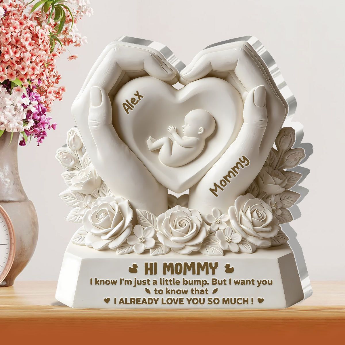 Targa acrilica personalizzata Hi Mommy Gravidanza | Nome personalizzato Baby Bump & Mommy Keepsake