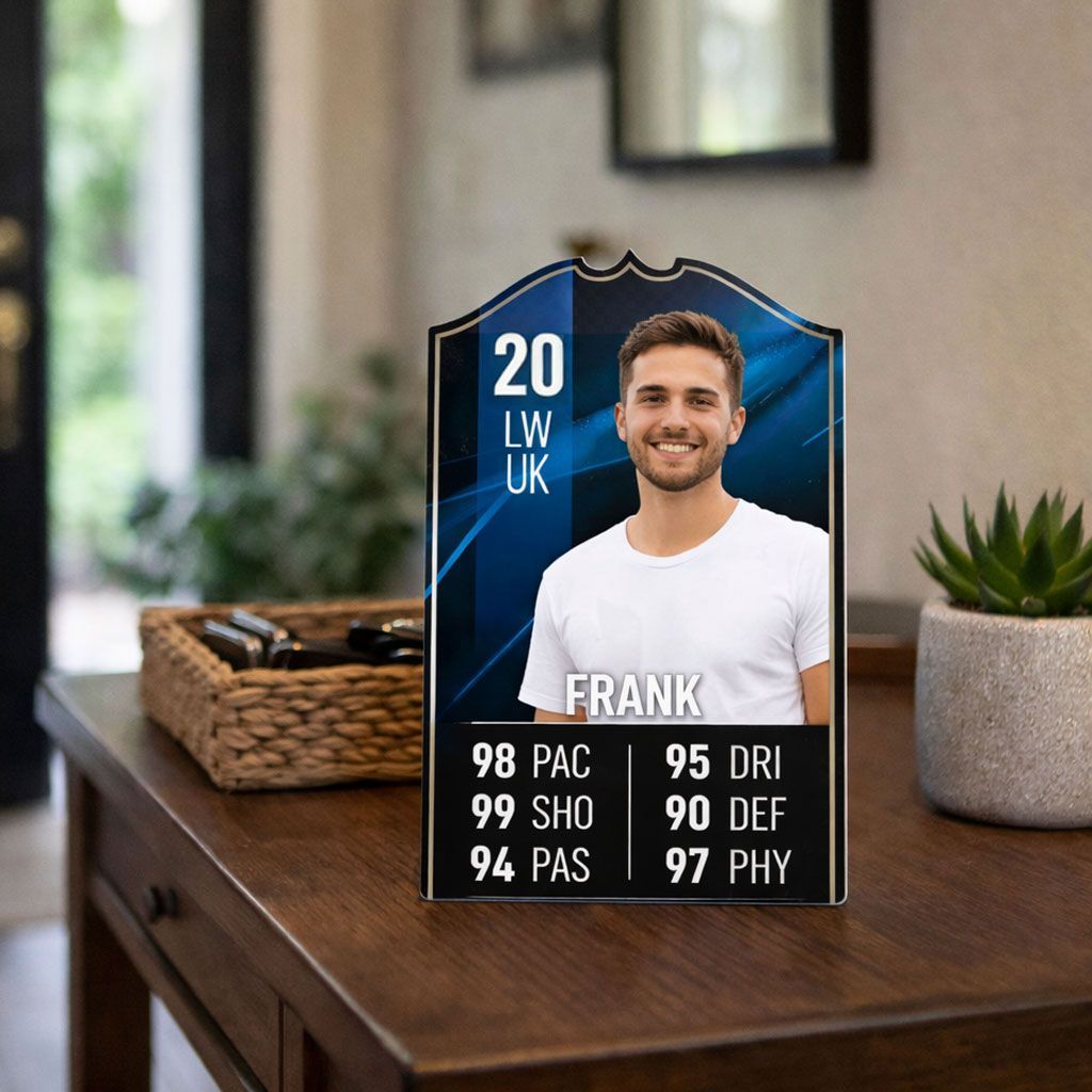 Struttura acrilica ad alta definizione: Realizzato in acrilico ecologico ad alta trasparenza, riproduce chiaramente i dettagli delle foto e delle stat, offre l'atmosfera fresca di una carta collezionabile esports ma rimane leggera e facile da visualizzare.