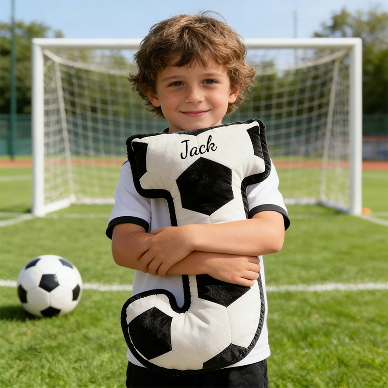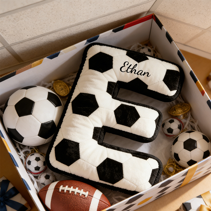 Design della struttura del calcio a forma di lettera: Caratterizzato dal classico modello patchwork esagonale da 26 lettere a forma di alfabeto con un motivo patchwork esagonale bianco nero che riflette un vero pallone da calcio, questo design porta "identità personale e passione di calcio" alla vita come un morbido, cuscino huggable-pieno di fascino giocoso e spirito atletico.