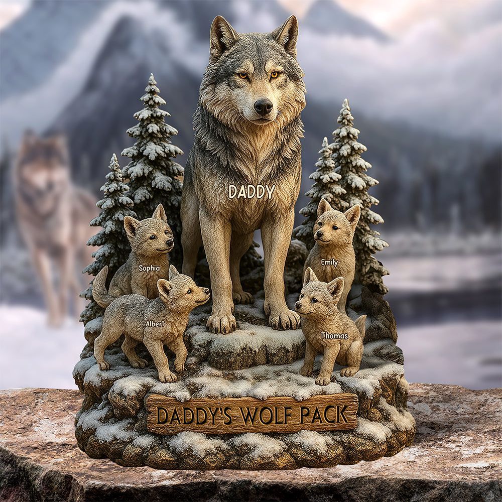 Personalizzazione completamente personalizzata: Personalizza con il nome del padre (e.g., papà), i nomi di tutti i bambini (e.g., sophia, Albert, ecc.) e un motto familiare (e.g., DAD'S WOLF PACK), creare un ricordo unico del pacchetto lupo unico per la tua famiglia.