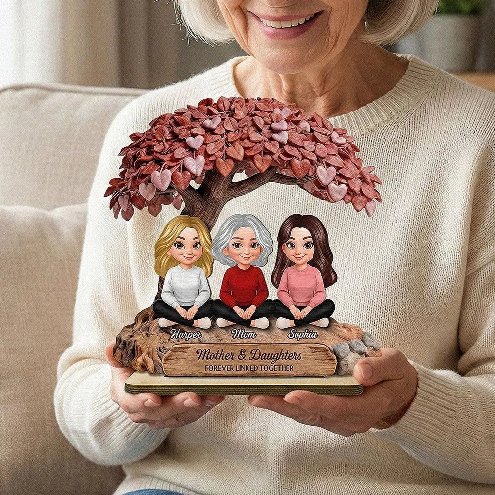 Scena personale della famiglia dell'albero del cuore di legno della placca a 2 strati per la mamma, un regalo unico per la festa della mamma con valore sentimentale