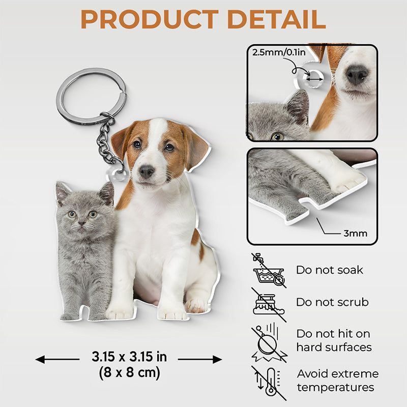 Foto personalizzate Il mio amico peloso è il mio allegro per le vacanze-Portachiavi acrilico personalizzato a forma di cane e gatto-Regalo per i proprietari di animali domestici, amanti degli animali domestici