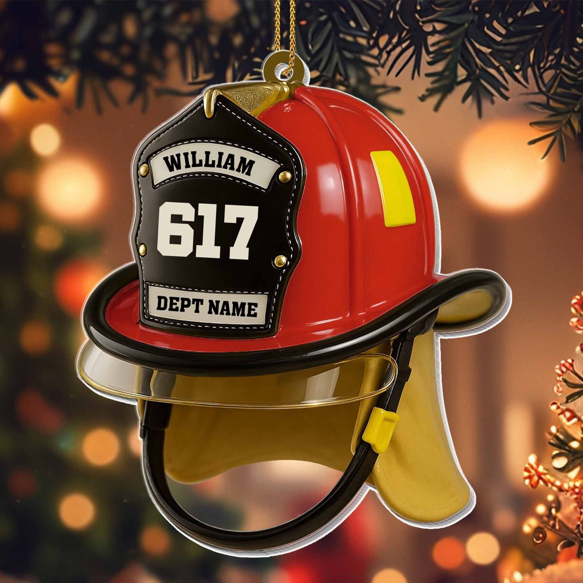 Casco da pompiere personalizzato e ornamento con distintivo, ornamento personalizzato in acrilico, regalo per pompieri