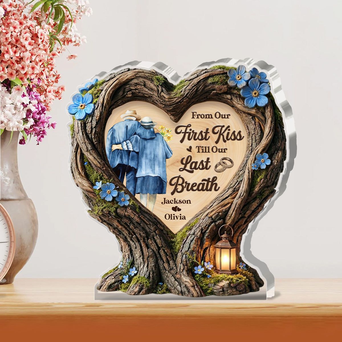 Dal nostro primo bacio fino al nostro ultimo respiro-Targa acrilica personalizzata sagomata personalizzata