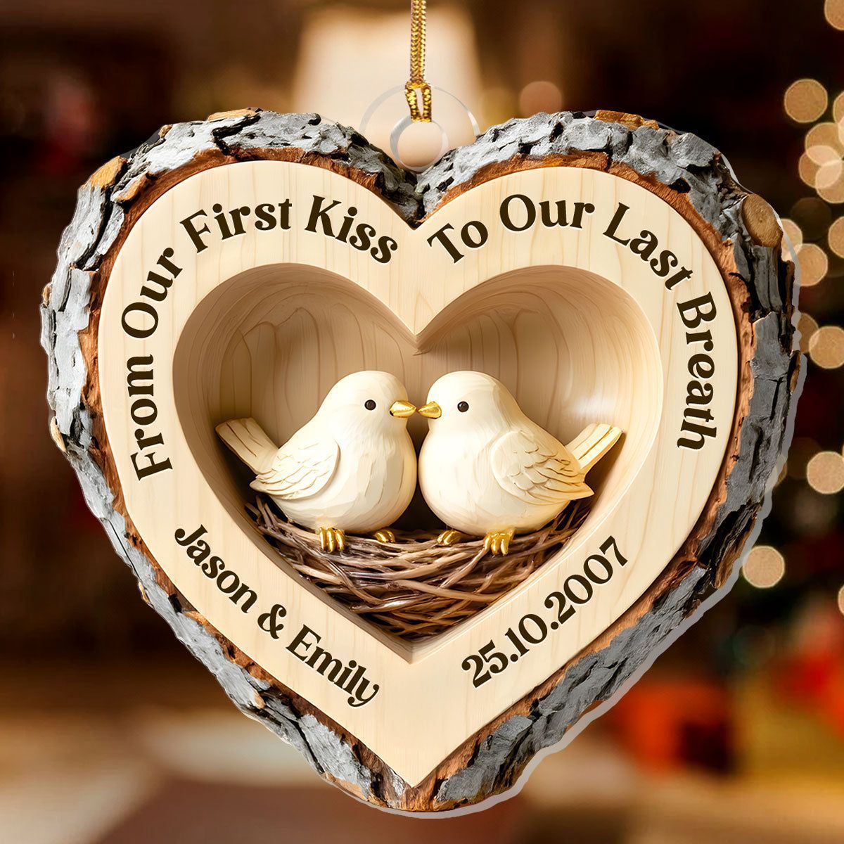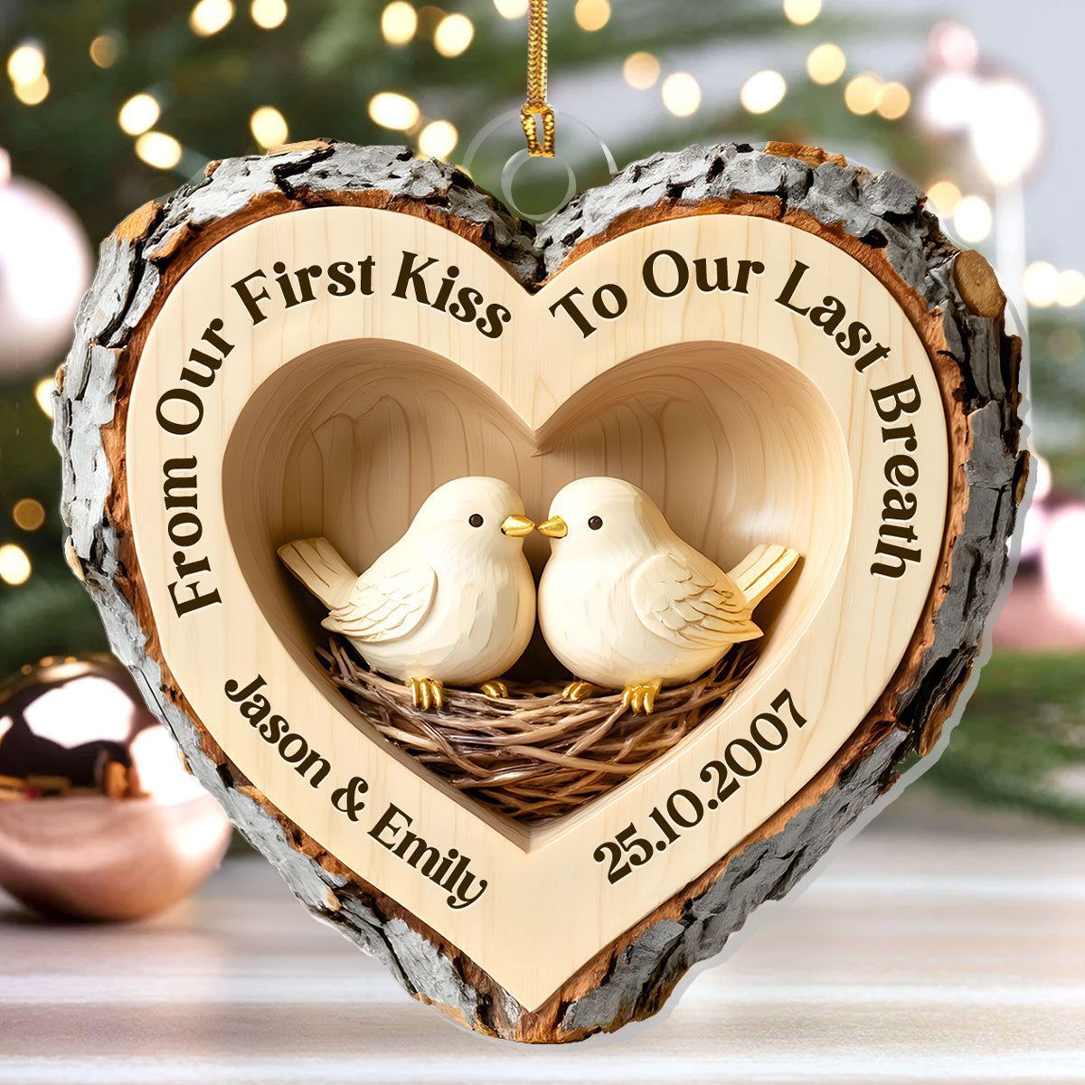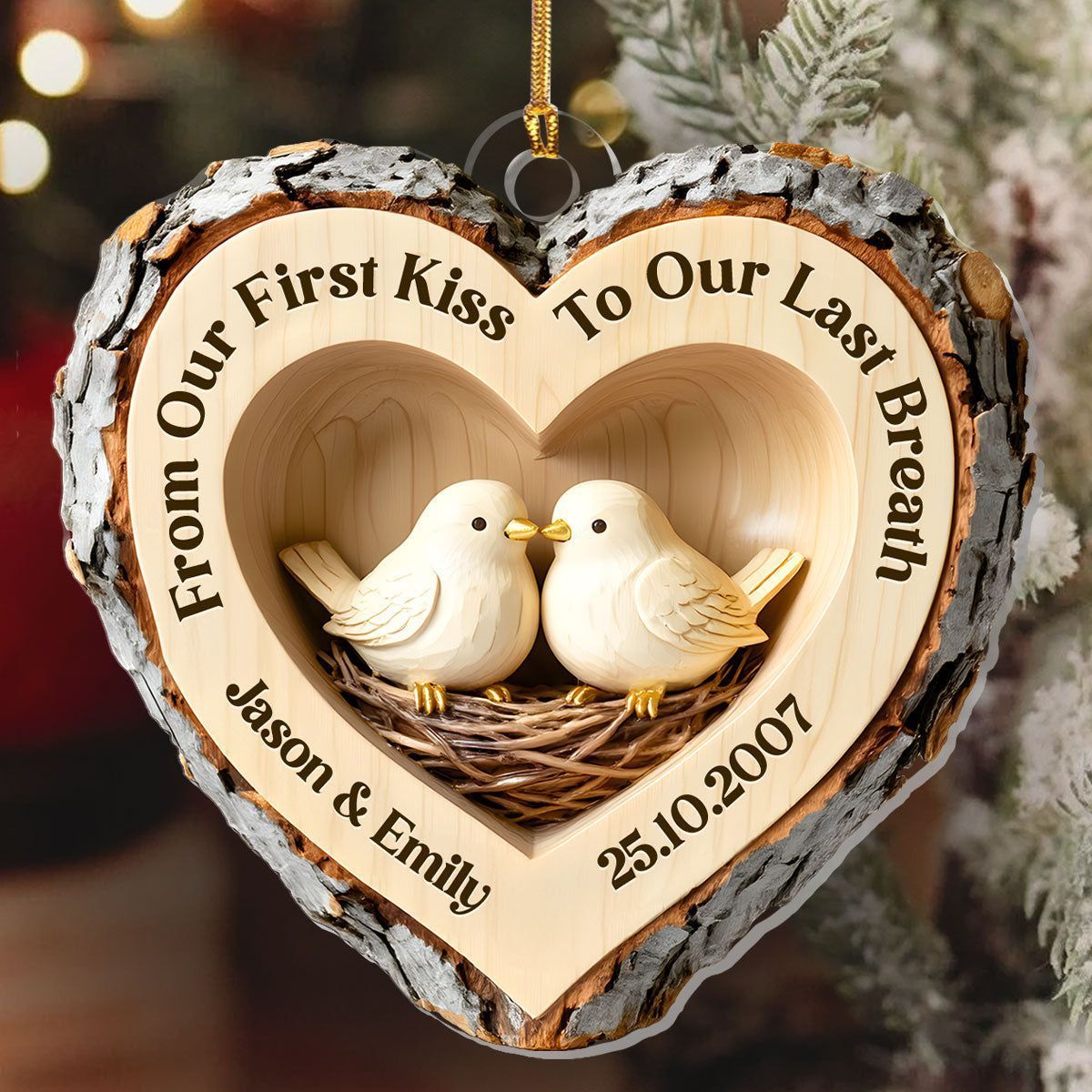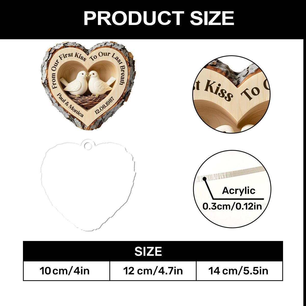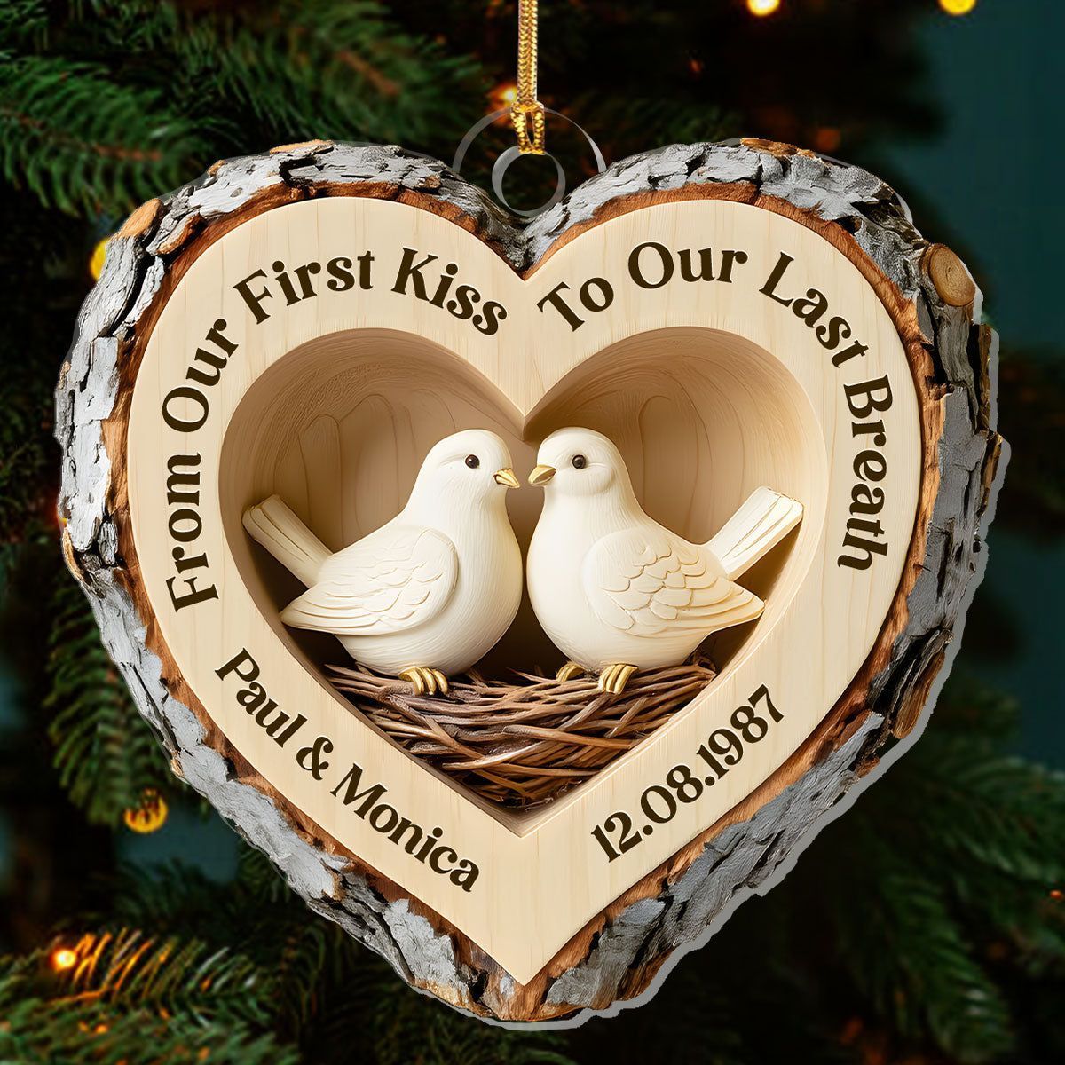 Cuore dell'amore nel bosco - Ornamento personalizzato in acrilico a 1 strato