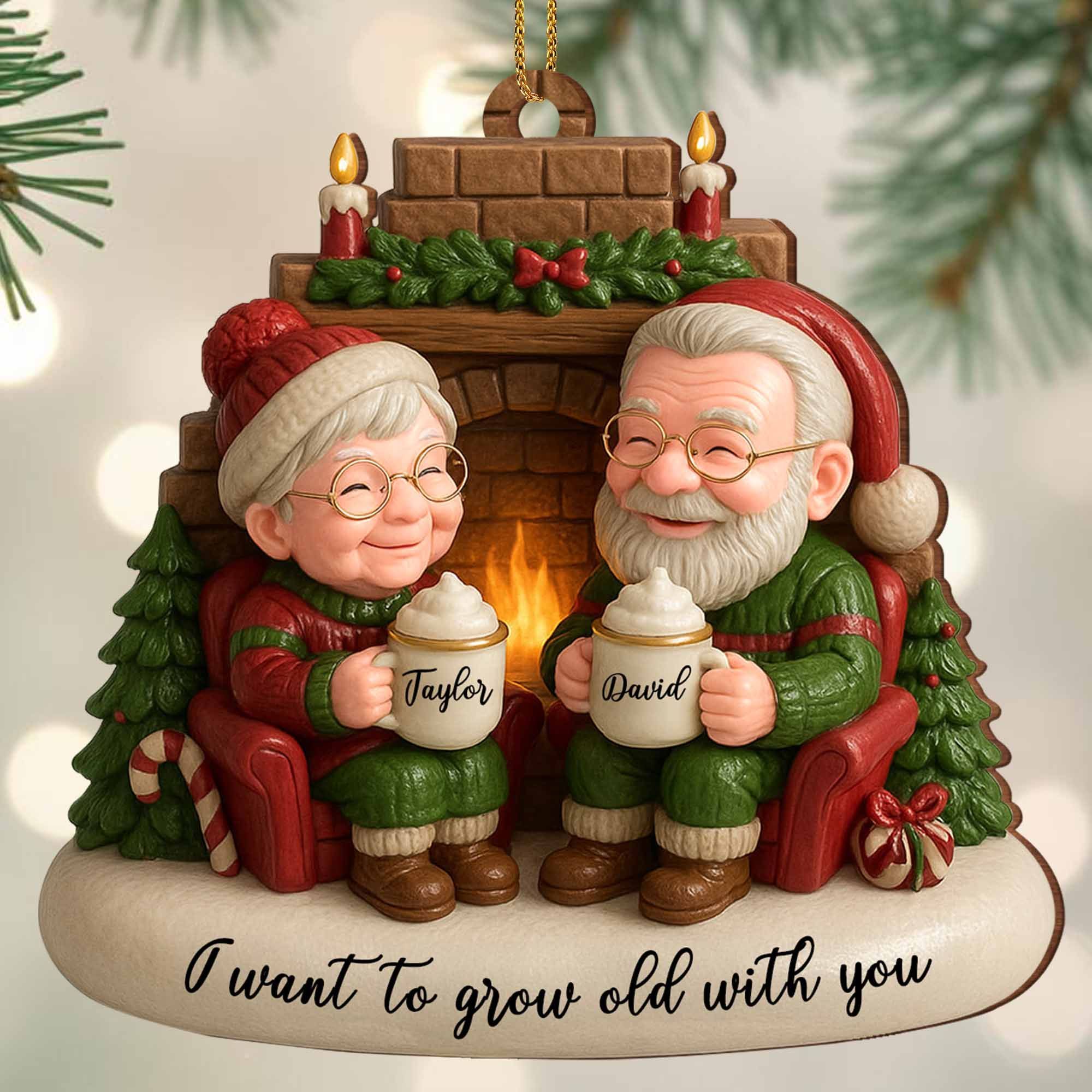 Voglio invecchiare con te, coppia di anziani davanti al caminetto, regalo per coppie