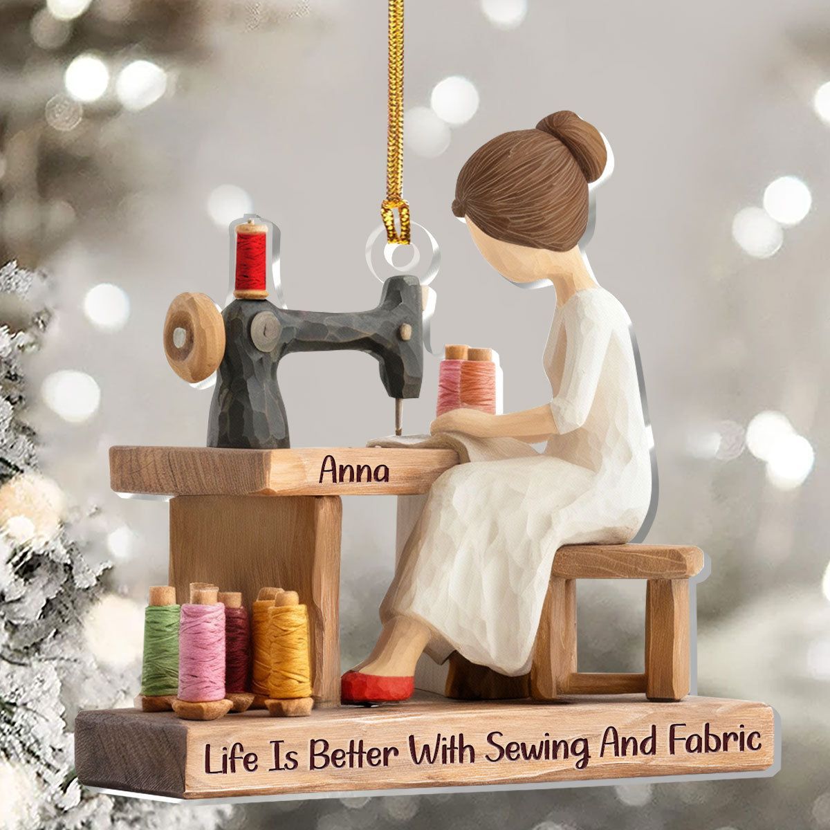 Il mio spazio cucito è il mio angolo di felicità - Ornamento personalizzato in acrilico a 1 strato