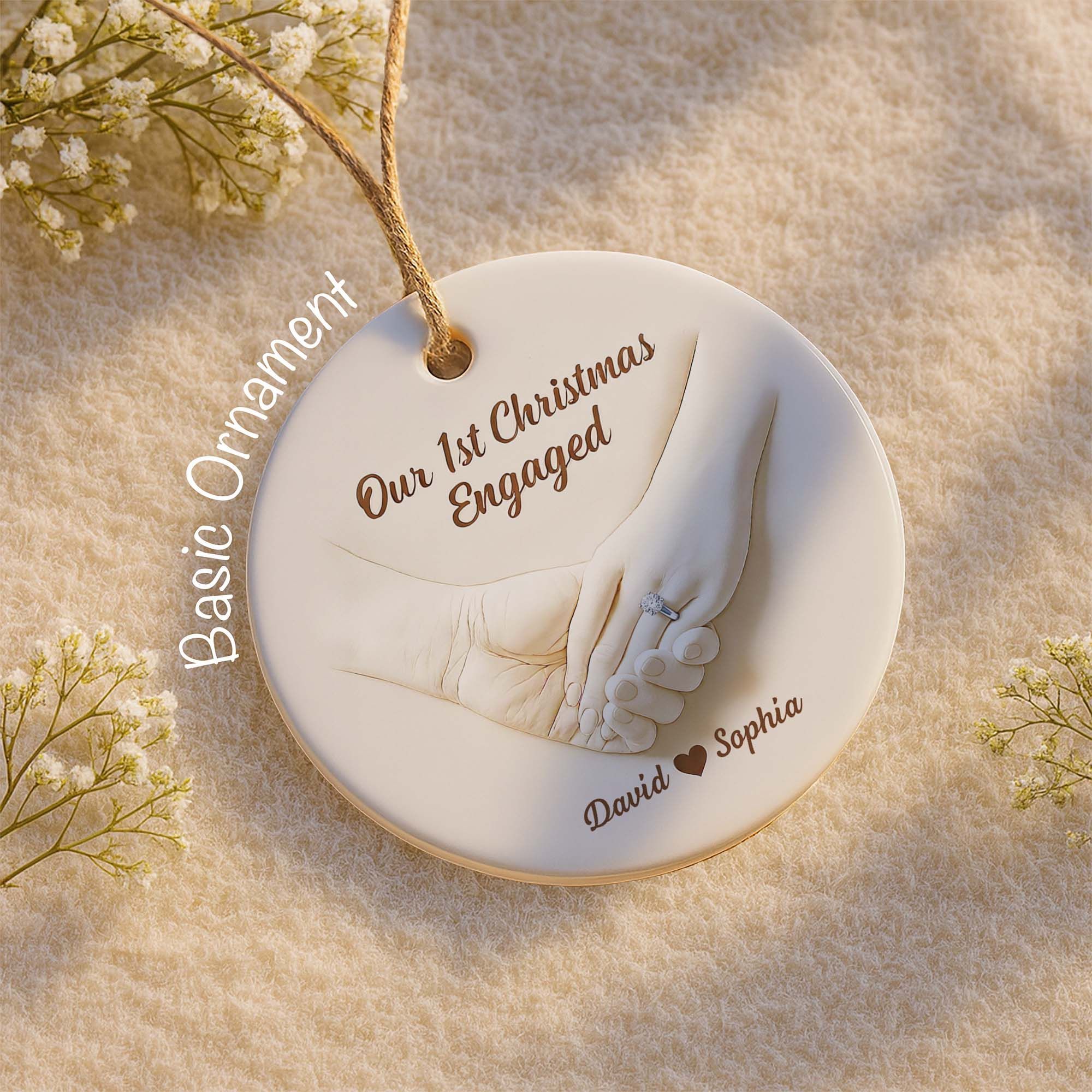 Il nostro primo Natale dopo il fidanzamento, un ornamento in ceramica realizzato su misura, un regalo per la nostra coppia di fidanzati, con un anello al dito.