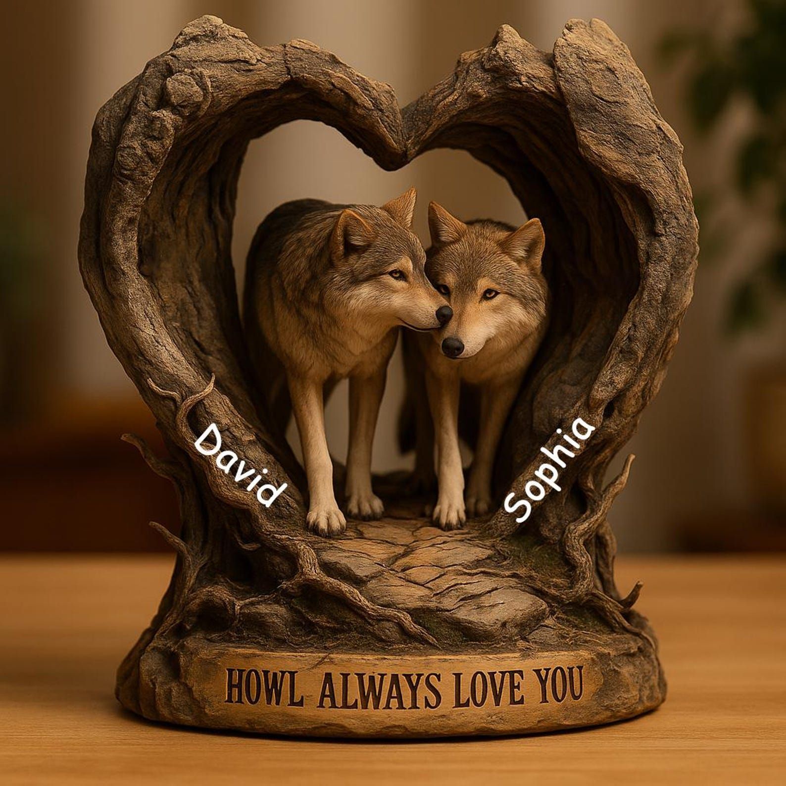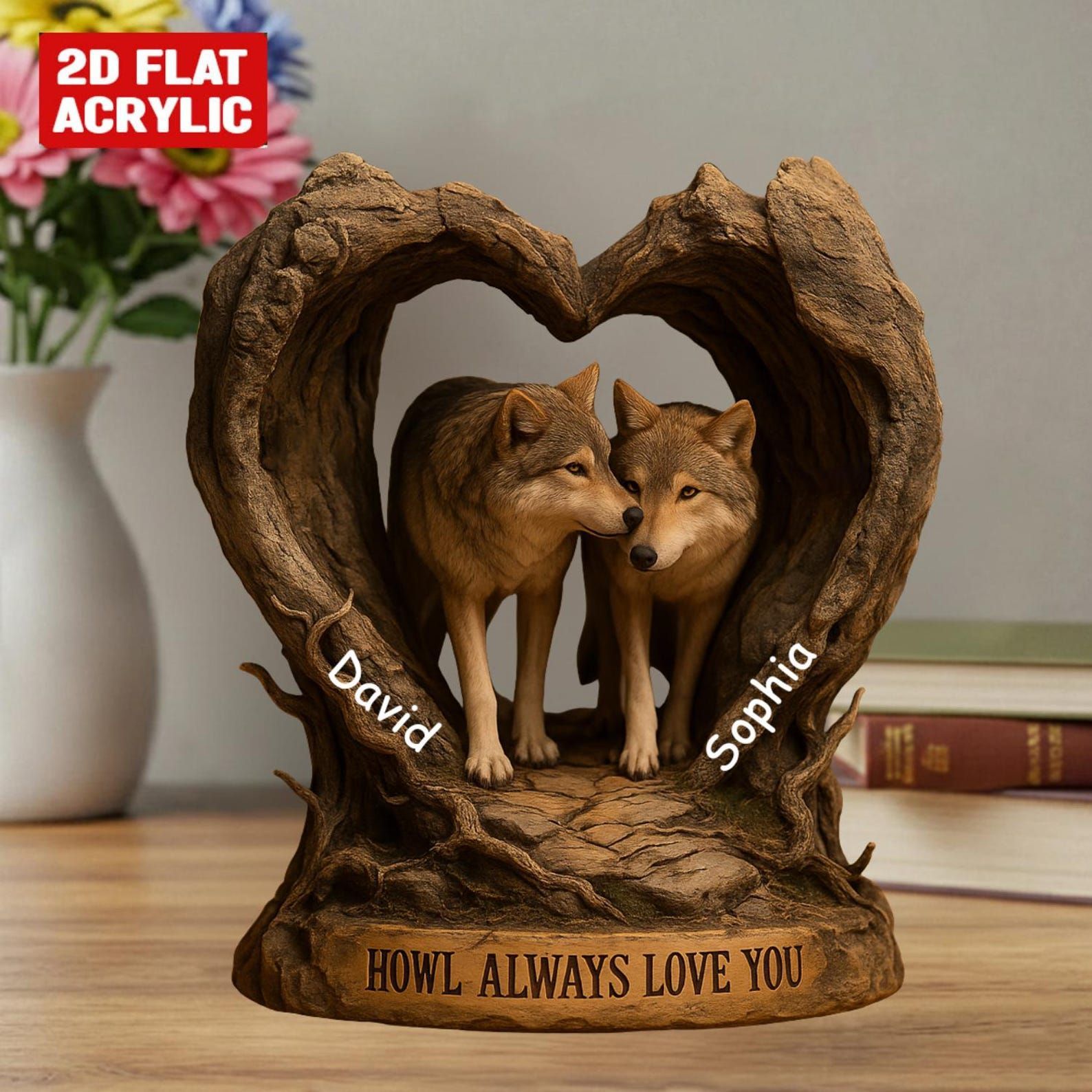 Coppia di lupi personalizzata che ulula ti ama sempre placca acrilica piatta, placca di coppia di lupi personalizzata, regalo di anniversario di matrimonio, regalo per coppie