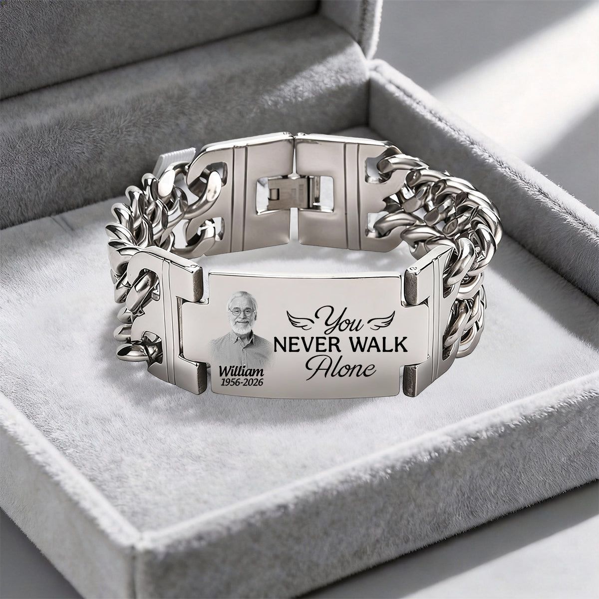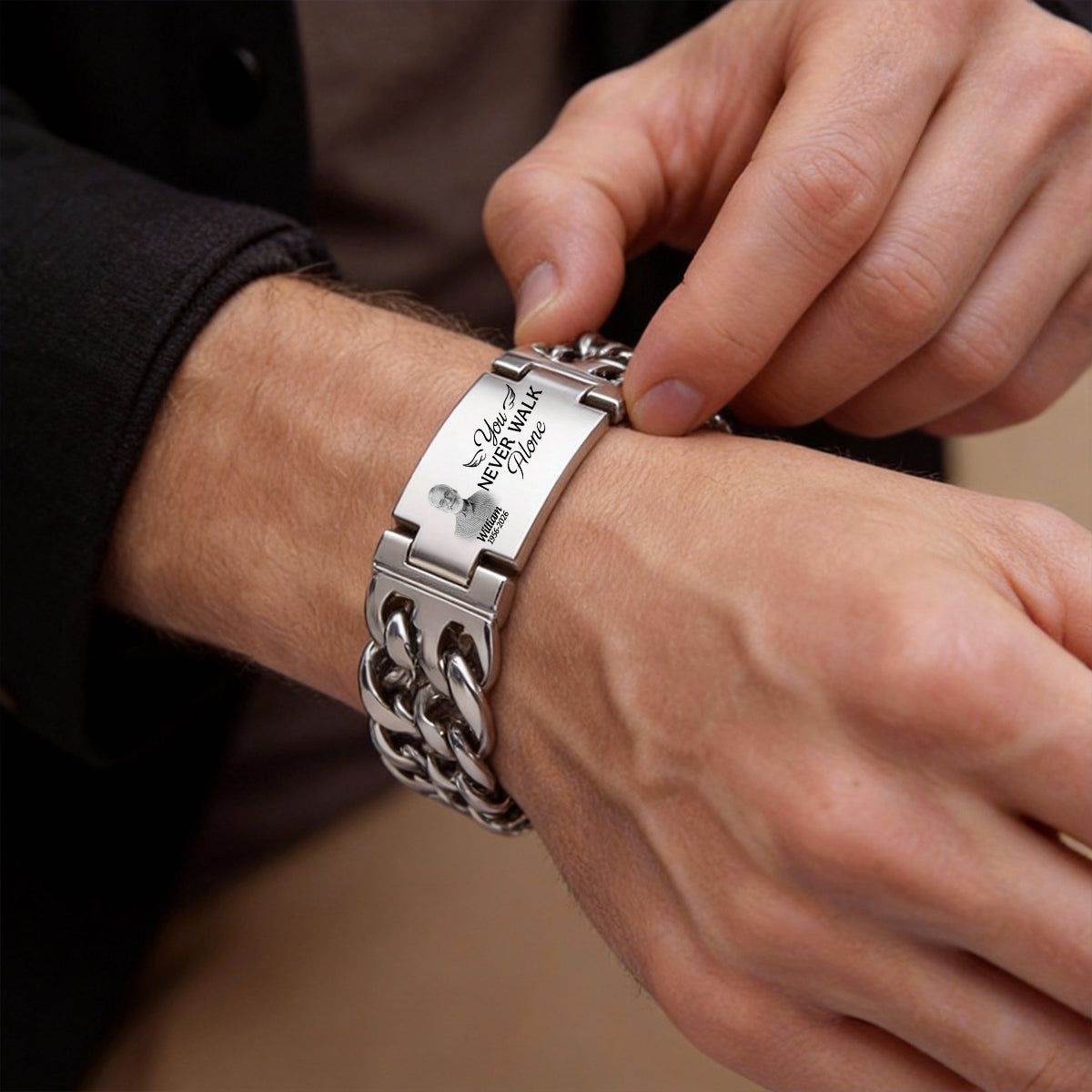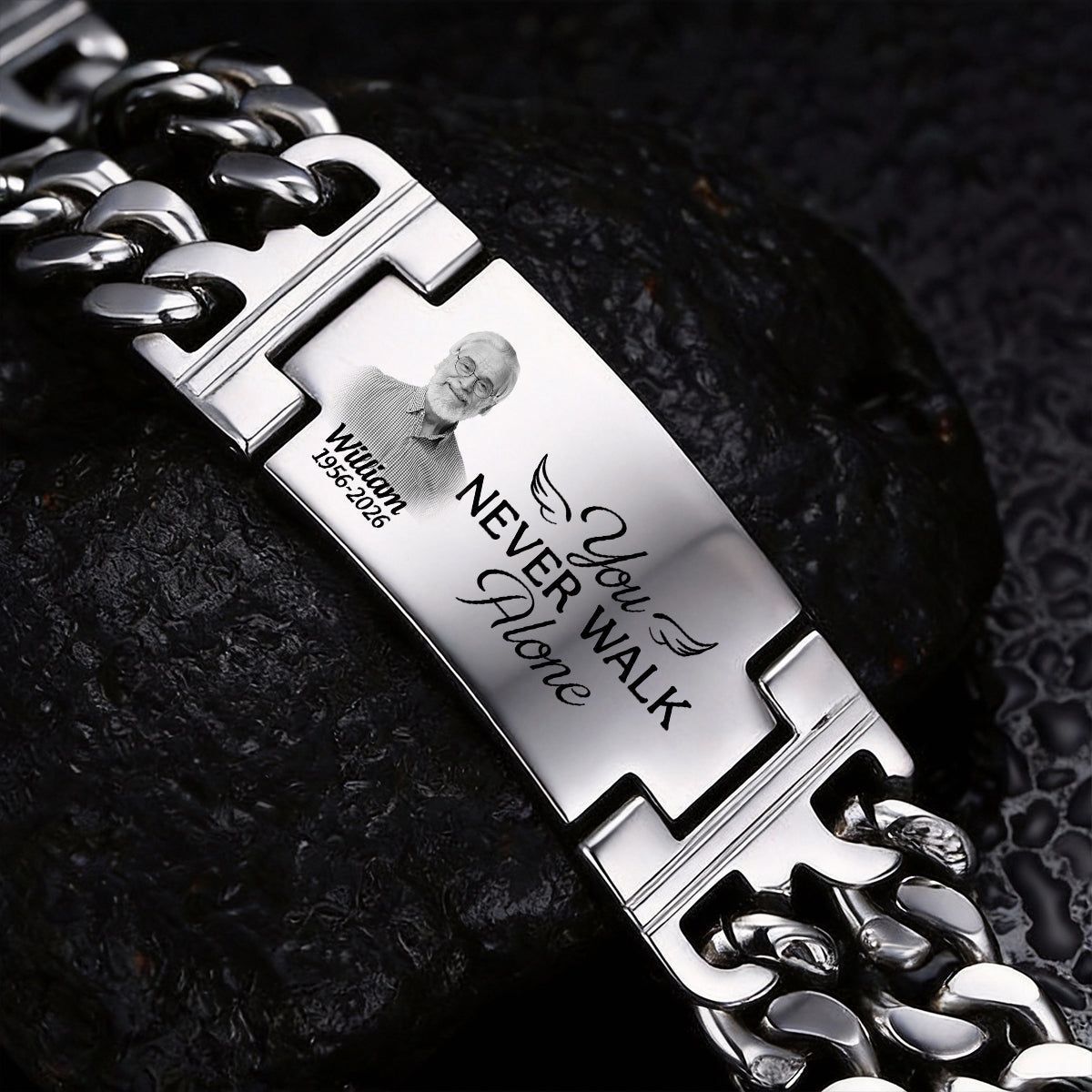 Foto personalizzate che non camini mai da solo Memorial-Bracciale inciso personalizzato a doppia catena