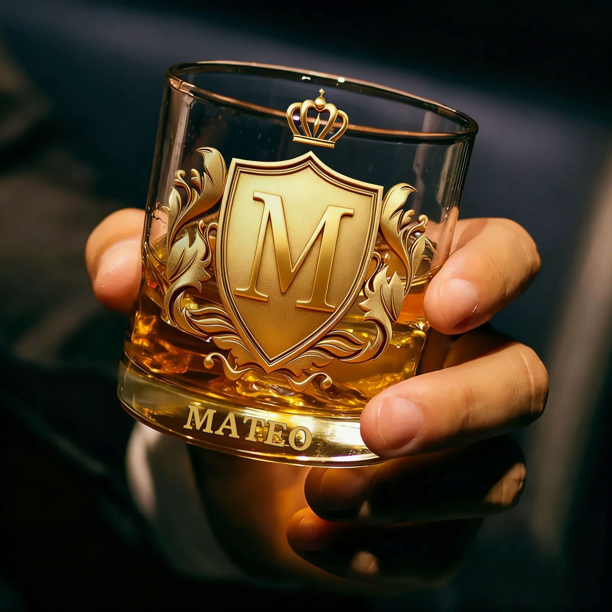 Personalizzato Golden 3D distintivo nome iniziale bicchiere di whisky vecchio stile regalo di compleanno per uomo barista appassionato di whisky