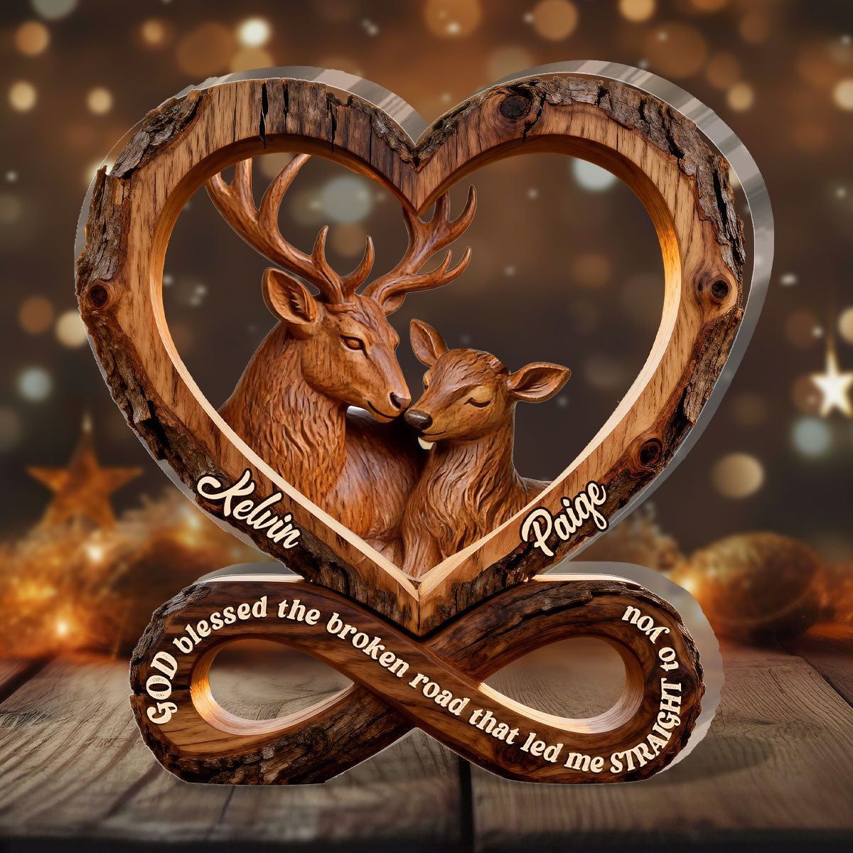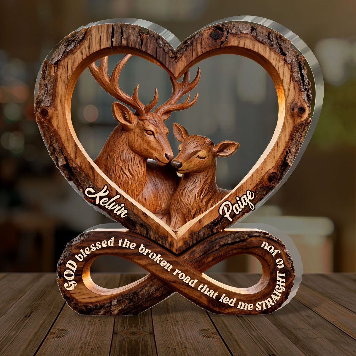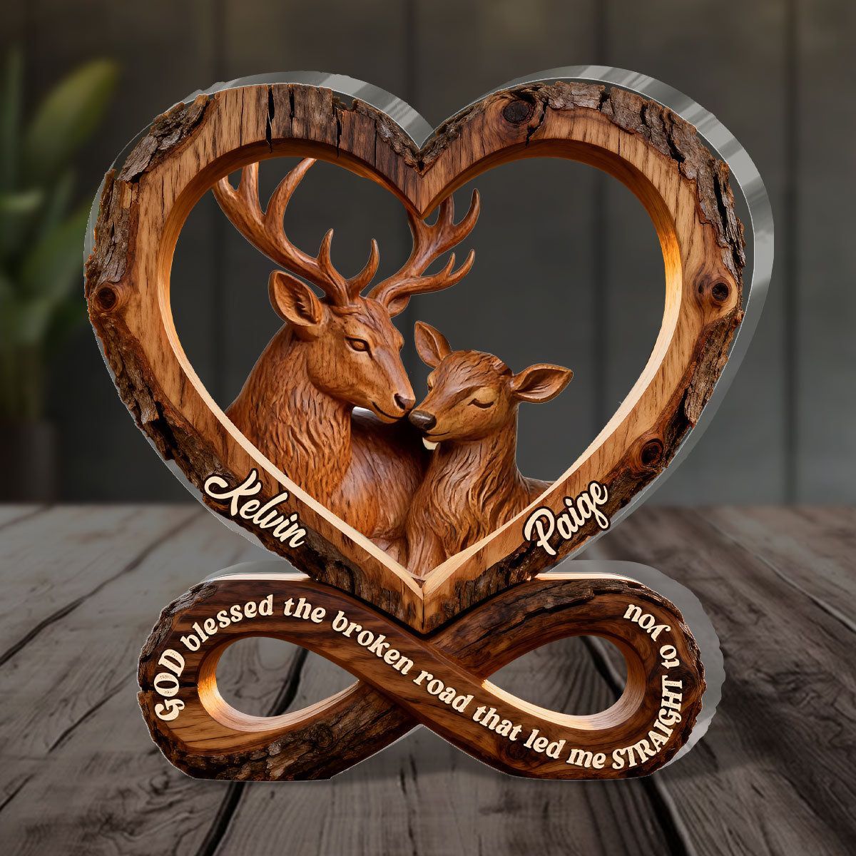 Coppia di cervi personalizzati Placca acrilica | Dio ha benedetto la strada spezzata Infinity Heart Love Keepsake